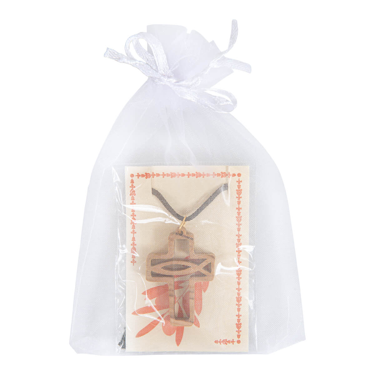 Halskette mit Kreuz/Fisch aus Olivenholz