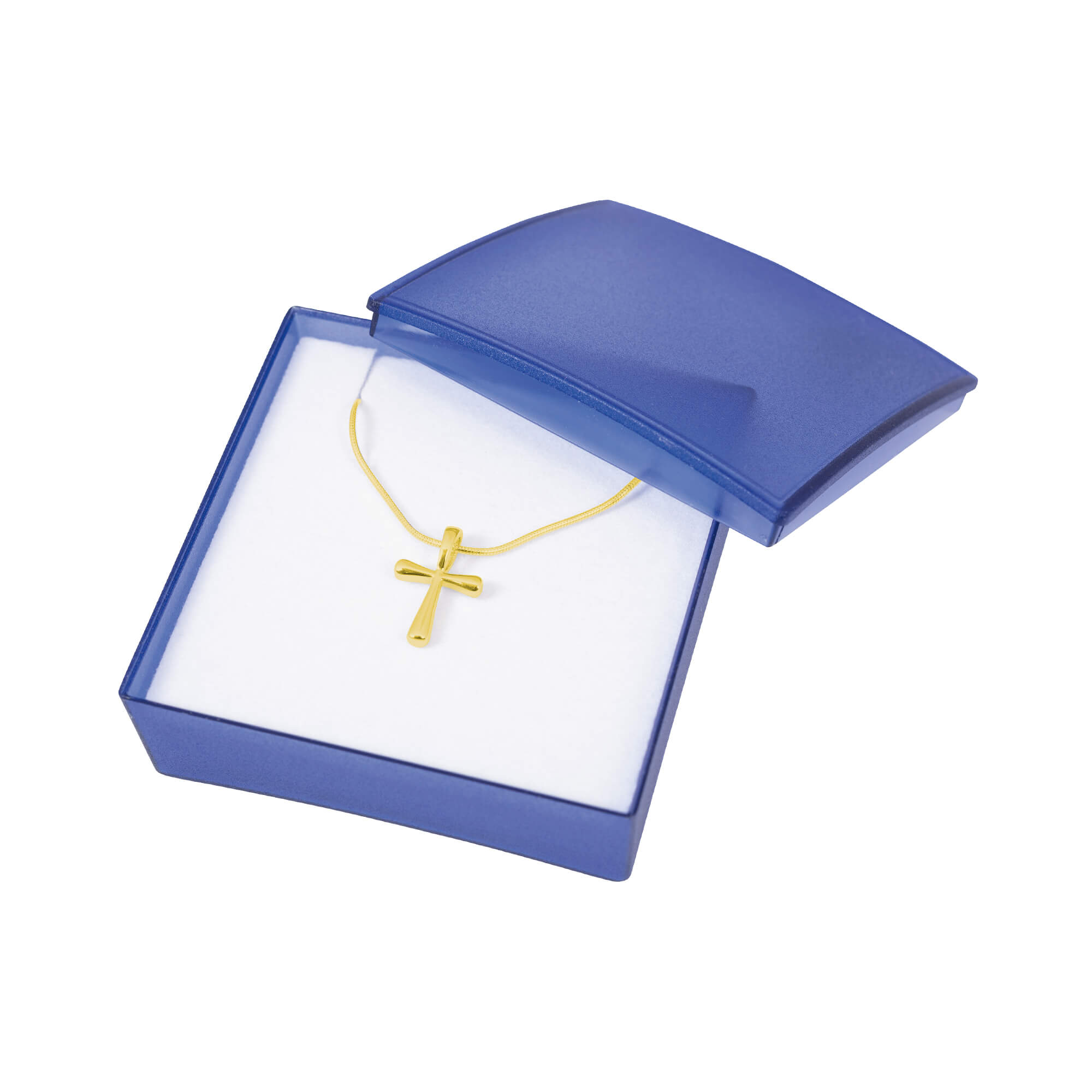 Feiner Kreuz-Anhänger mit passender Schlangenkette.