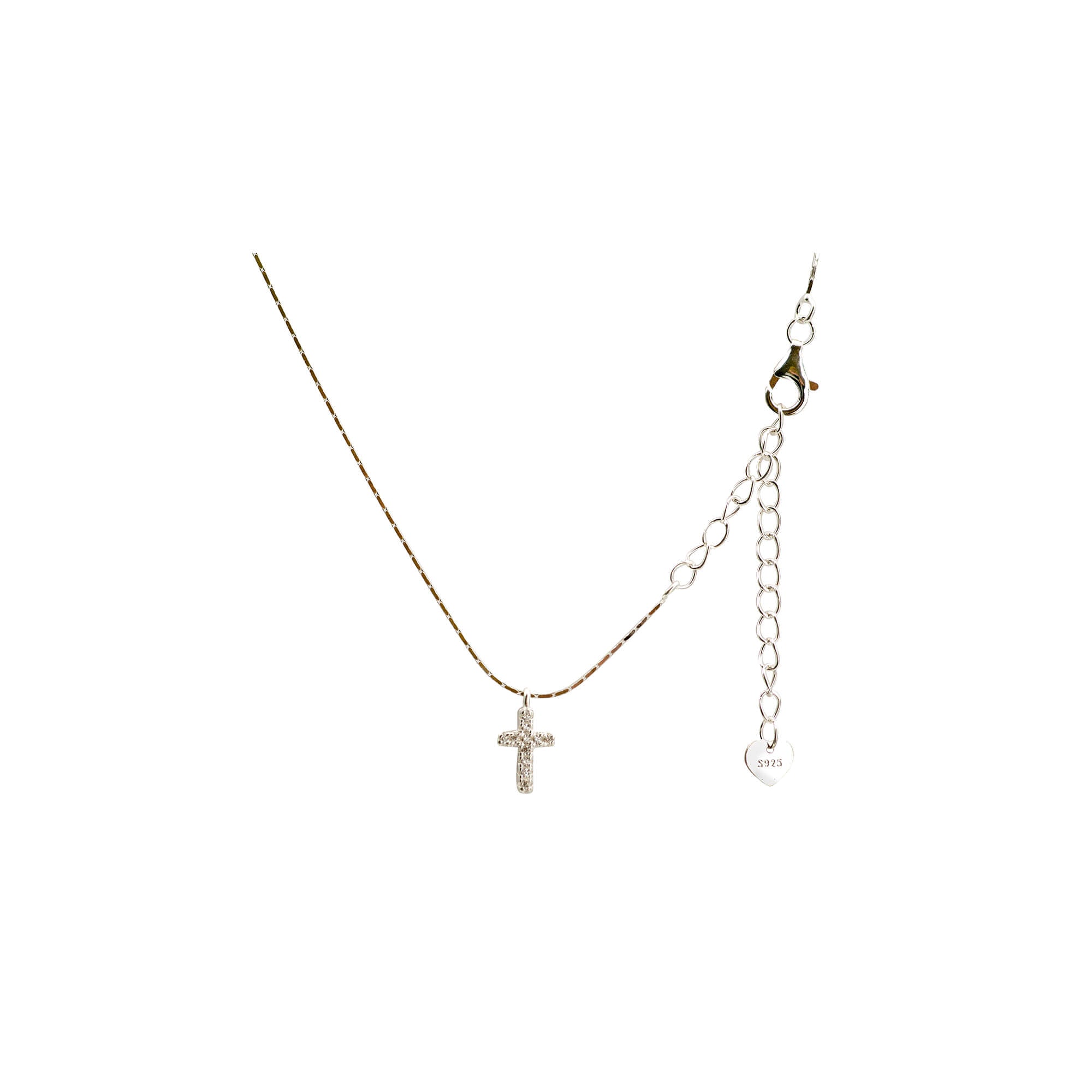 Elegante 925er Silber-Halskette mit filigranem Kreuzanhänger, besetzt mit funkelnden Zirkonia-Steinen.