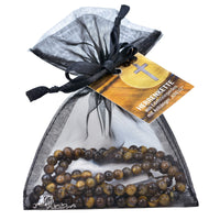 Die Halskette ist schon fertig als Geschenk im passenden Organzabeutel verpackt. Der Organzabeutel ist zusätzlich mit einer Schmuckkarte versehen.