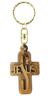 Kreuz / Jesus (Schlüsselanhänger) aus Olivenholz