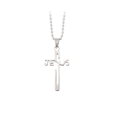 Kreuz - Kette mit Anhänger (Schriftzug Jesus)