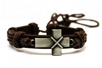 Kreuz (Lederarmband mit Metallkreuz) Braun