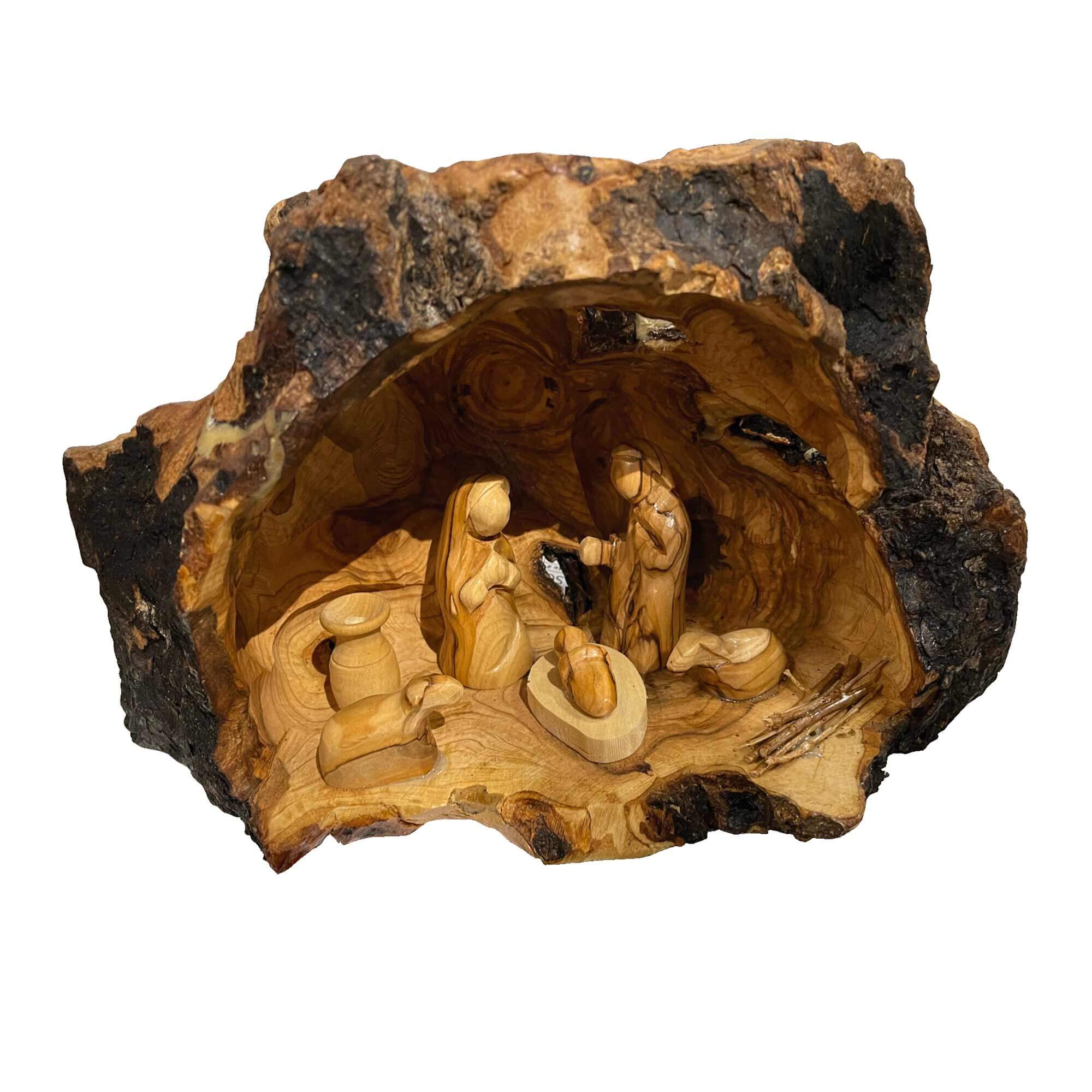 Eine besondere Krippe, hergestellt in liebevoller Handarbeit aus einem Wurzelstück eines Olivenbaumes aus Israel/Bethlehem. Daher ist jede Krippe ein Unikat, ca. 18 x 15 x 12 cm.