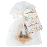 Schöner Anhänger in Glockenform mit gelssertem Krippen-Motiv im Inneren.