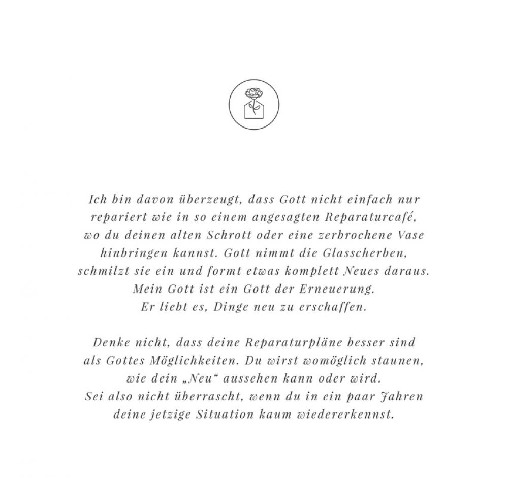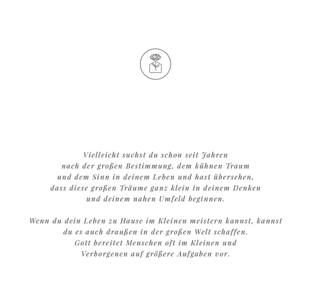 53 liebevoll gestaltete Blätter bieten für jede Woche des Jahres neue Inspiration und ermutigende Gedanken. Auf den Rückseiten der Blätter führen kurze Impulse und Texte diese Gedanken fort. Das Aufstellbuch ist eine wandelbare Dekoration, die dich durchs ganze Jahr begleitet, und eine stetige Ermutigung voller blühender Worte.