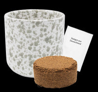 Anzucht-Set bestehend aus Keramikbecher, Quelltablette, Saatgut und Anleitung.