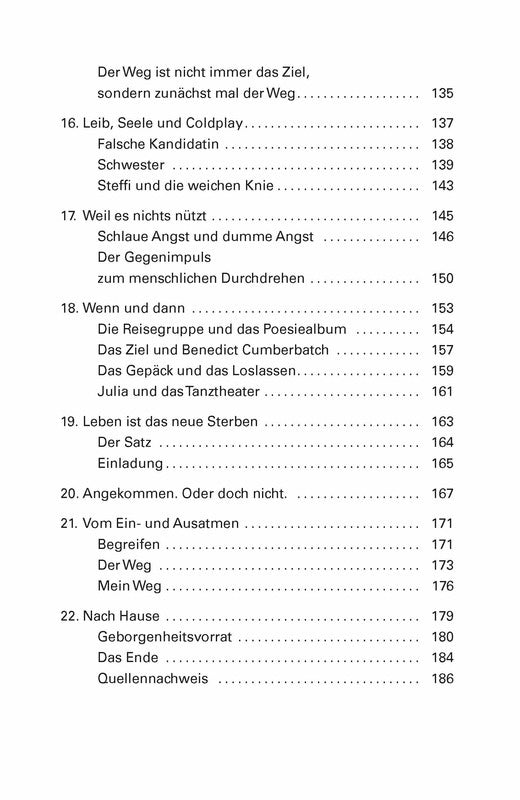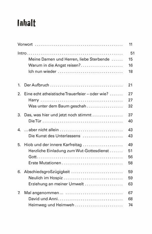 Mit viel Humor und Tiefgang bringt sie ihre Erlebnisse und Entdeckungen zu Papier, dabei gelingt ihr ein echtes Kunststück: ein Buch übers Sterben zu schreiben, das bis zum Rand mit Lebensfreude gefüllt ist.