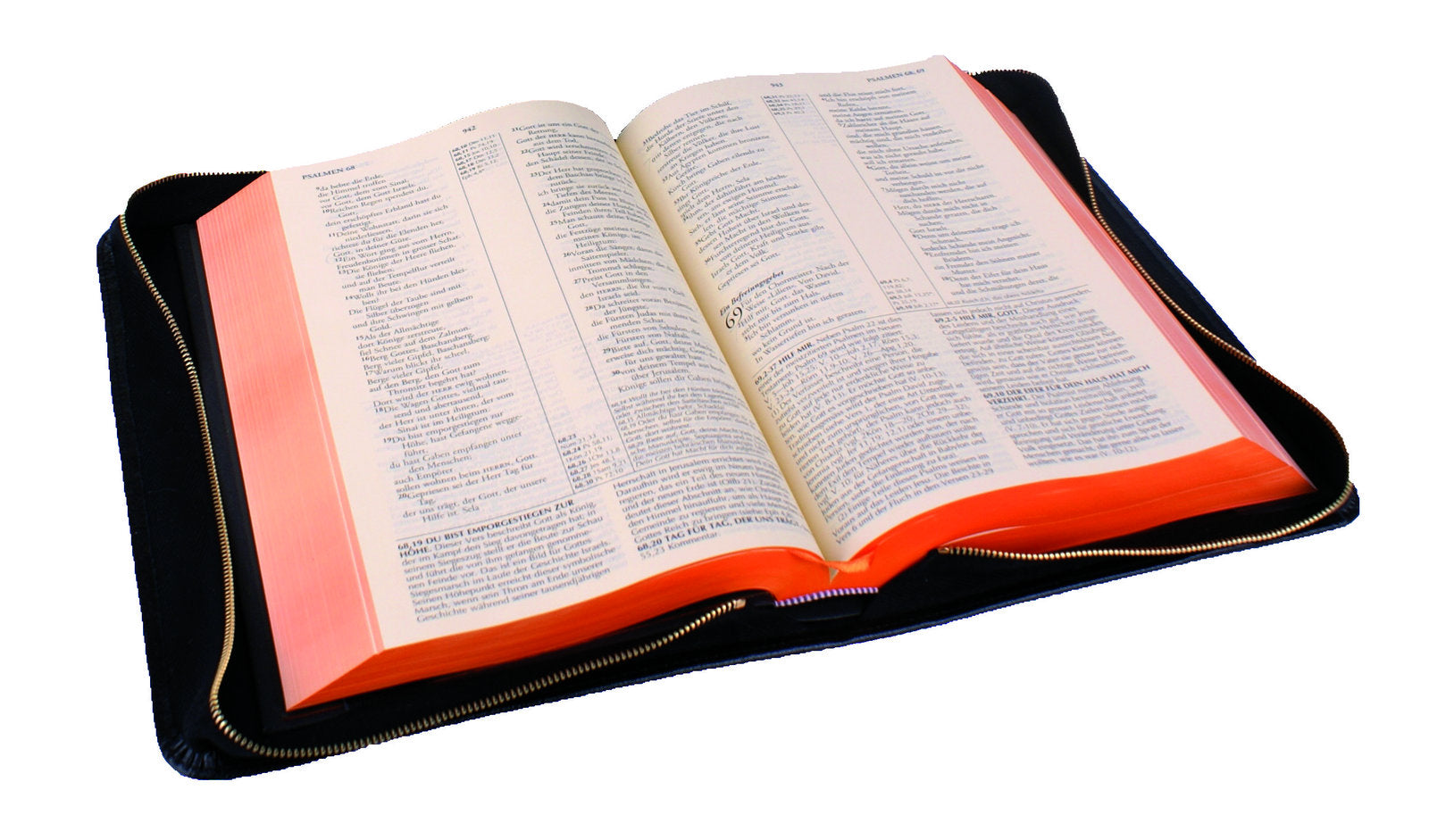 Passend für Ihre Stamps-Studienbibel: Die maßgefertigte Echtleder-Reißverschlusshülle mit Stamps-Rückenprägung. Eine Studienbibel soll ihren Zweck lange erfüllen. Zum Schutz und zum leichteren Mitnehmen der Bibel haben wir extra eine genau passende Echtlederhülle anfertigen lassen. Auf dem Rücken der Hülle findet sich der originale Schriftzug, den auch der Buchrücken der Bibel ziert.
