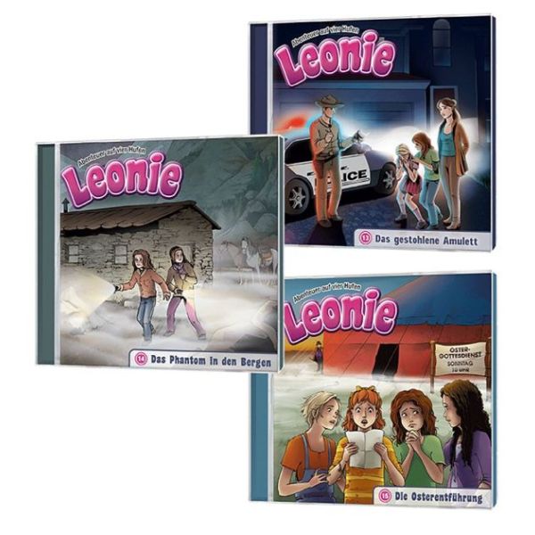 Die Hörspielserie "Leonie - Abenteuer auf 4 Hufen" erzählt spannende Detektiv-Geschichten mit Leonie und ihren Freunden in "Green Valley", Kalifornien. Leonie liebt Pferde und geht gern in die Jungschar. Sie hat eine gute Spürnase und kommt Bösewichtern auf die Spur.