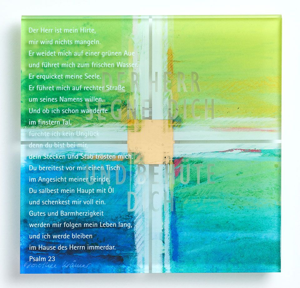 Mit eindrucksvollen Texten und leuchtenden Farben hat Dorothee Krämer Bilder mit räumlicher Tiefe gestaltet. Zum Aufstellen oder als Wandschmuck. Als Zusage und Halt in der Trauer oder Ausdruck von Hoffnung und Gottvertrauen. Oder einfach für gute Freunde.