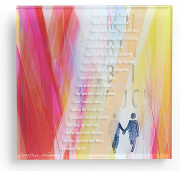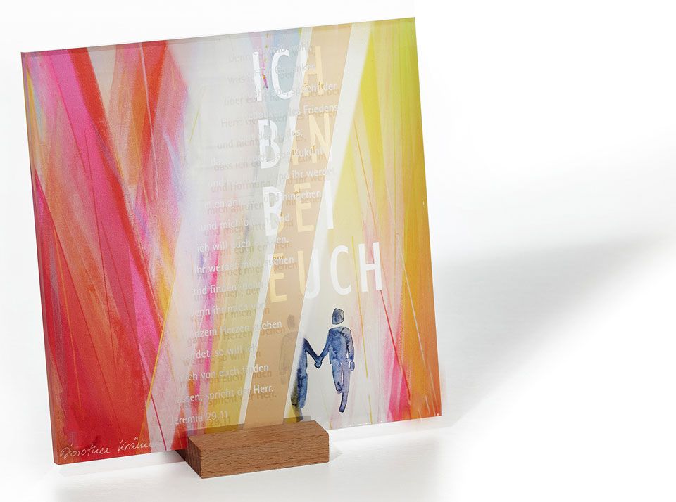 Mit eindrucksvollen Texten und leuchtenden Farben hat Dorothee Krämer Bilder mit räumlicher Tiefe gestaltet. Zum Aufstellen oder als Wandschmuck. Als Zusage und Halt in der Trauer oder Ausdruck von Hoffnung und Gottvertrauen. Oder einfach für gute Freunde.