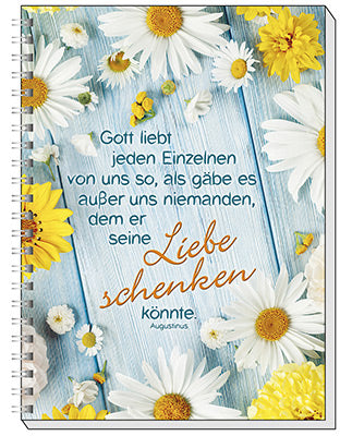 Dieses Notizbuch hat eine praktische Spiralbindung und einen festen Umschlag.
