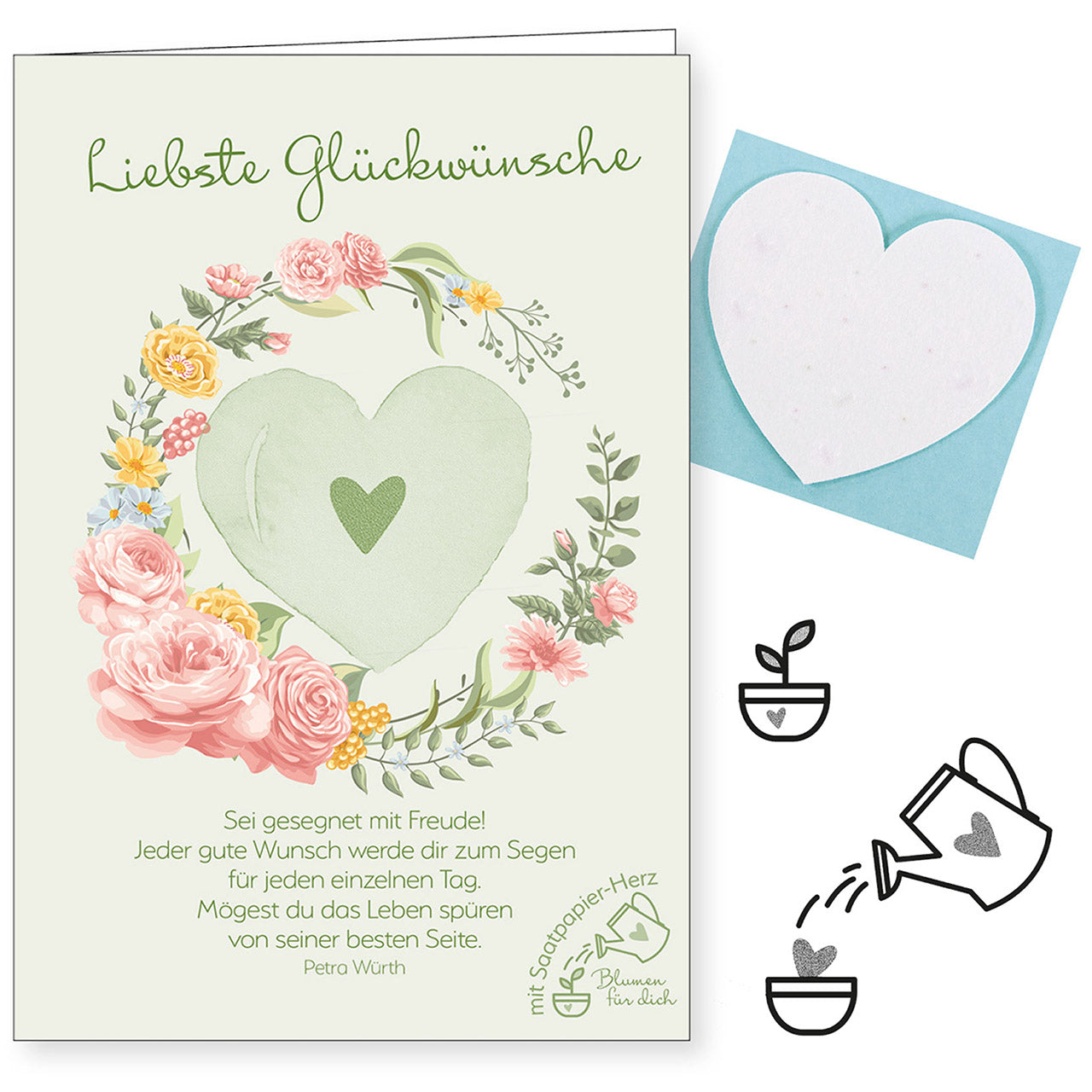 Liebste Glückwünsche (Faltkarte mit Saatpapierherz)