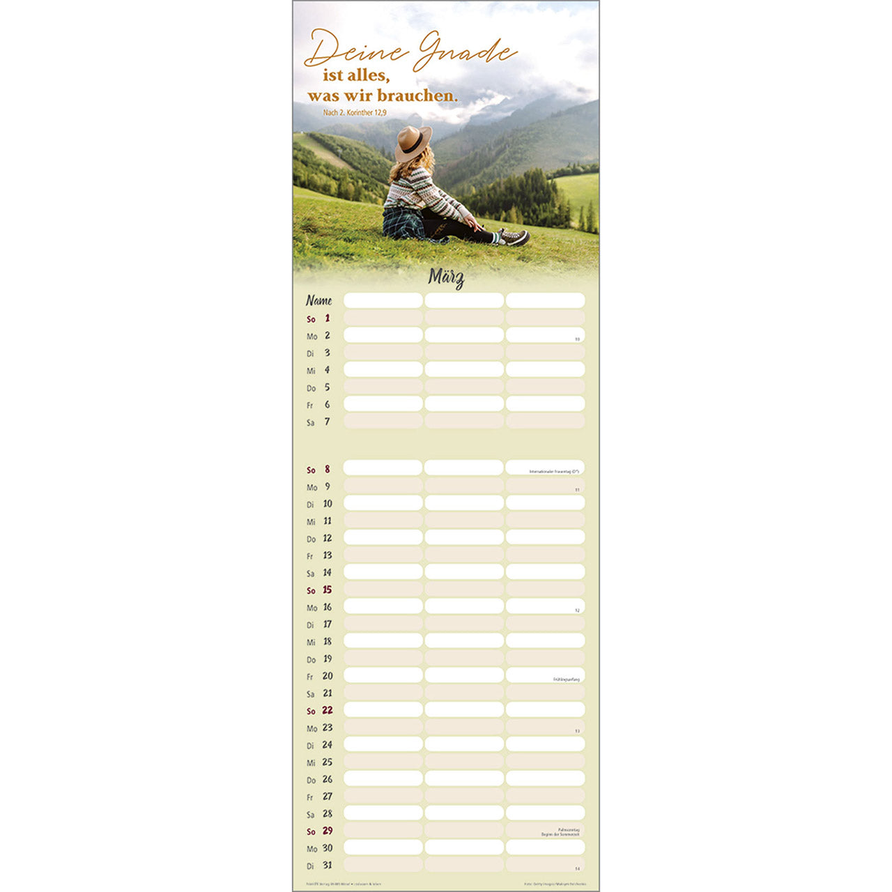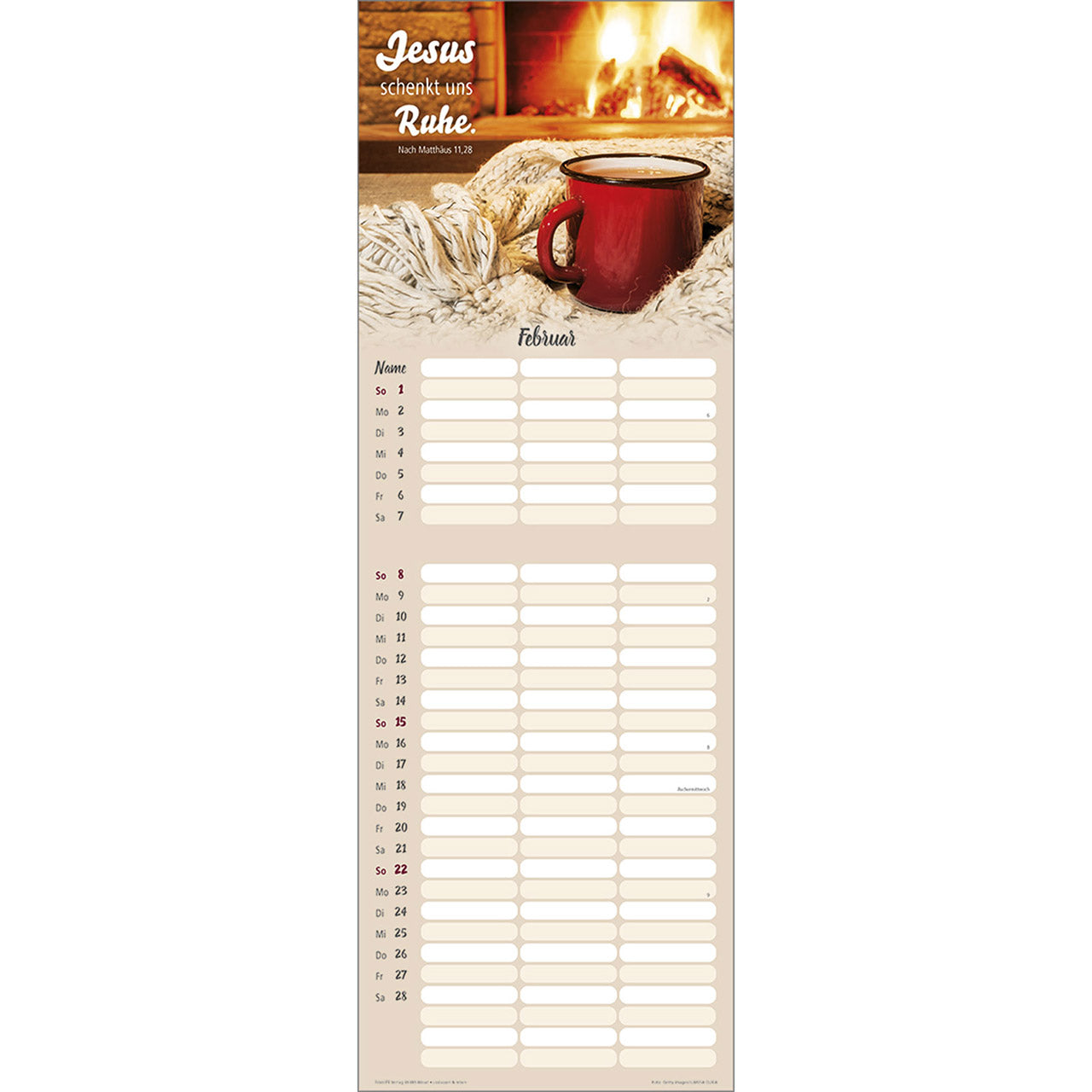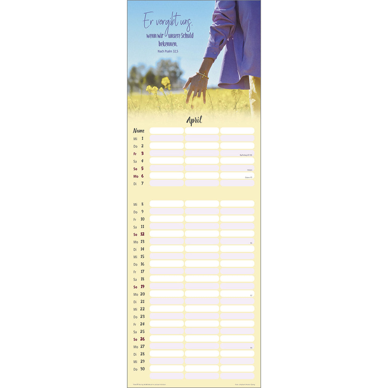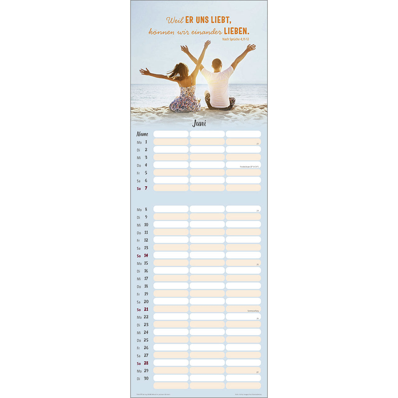 Termin-Kalender mit Bibelwort-Herzstücken - 3 Spalten