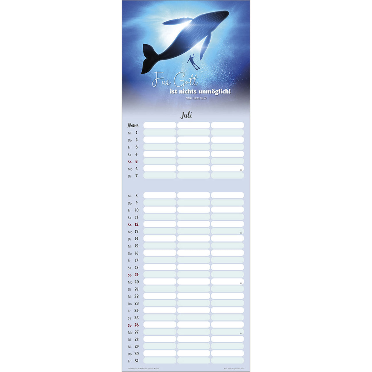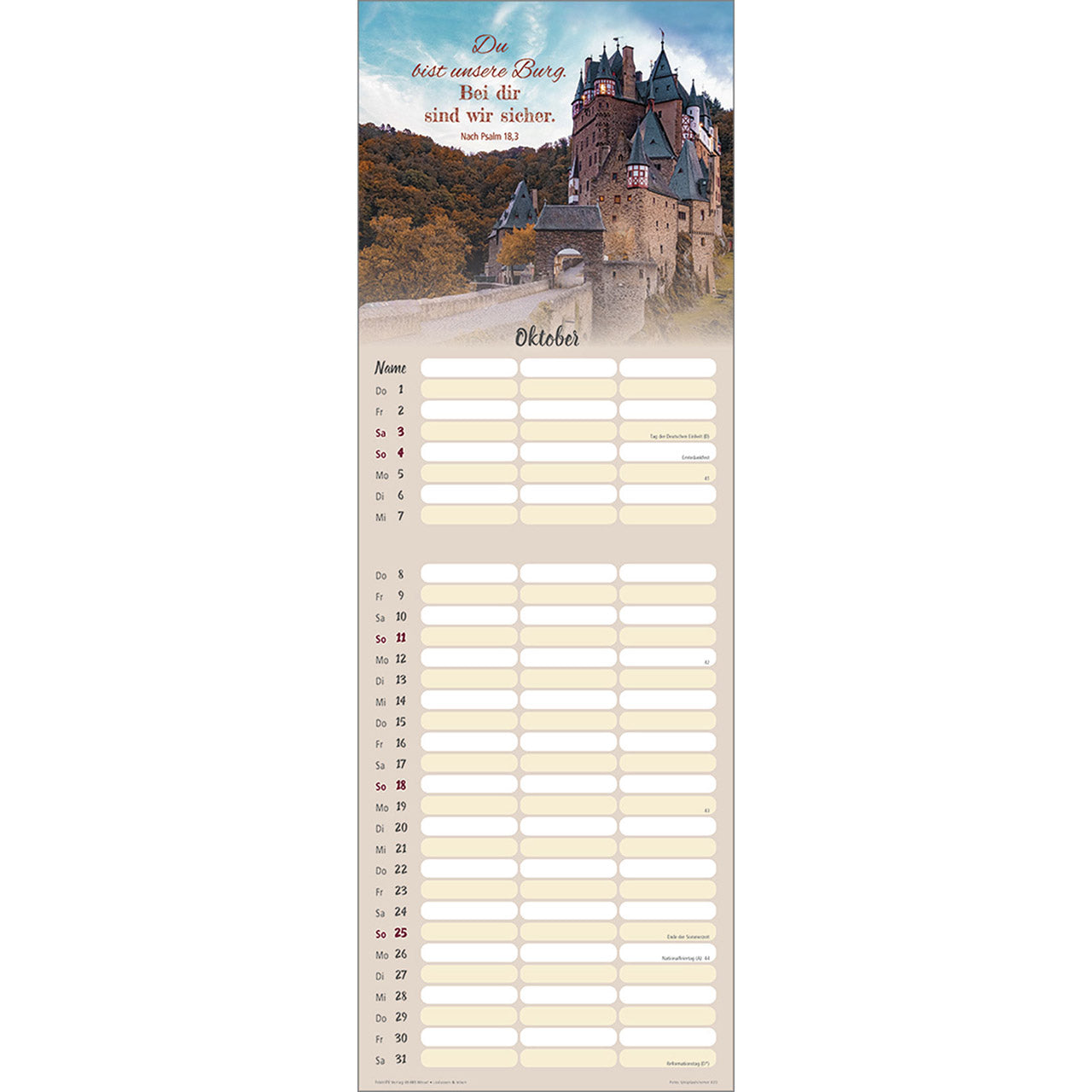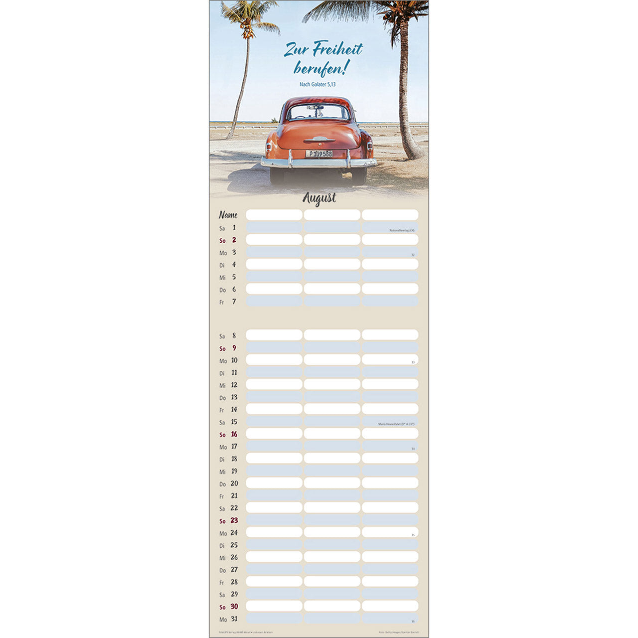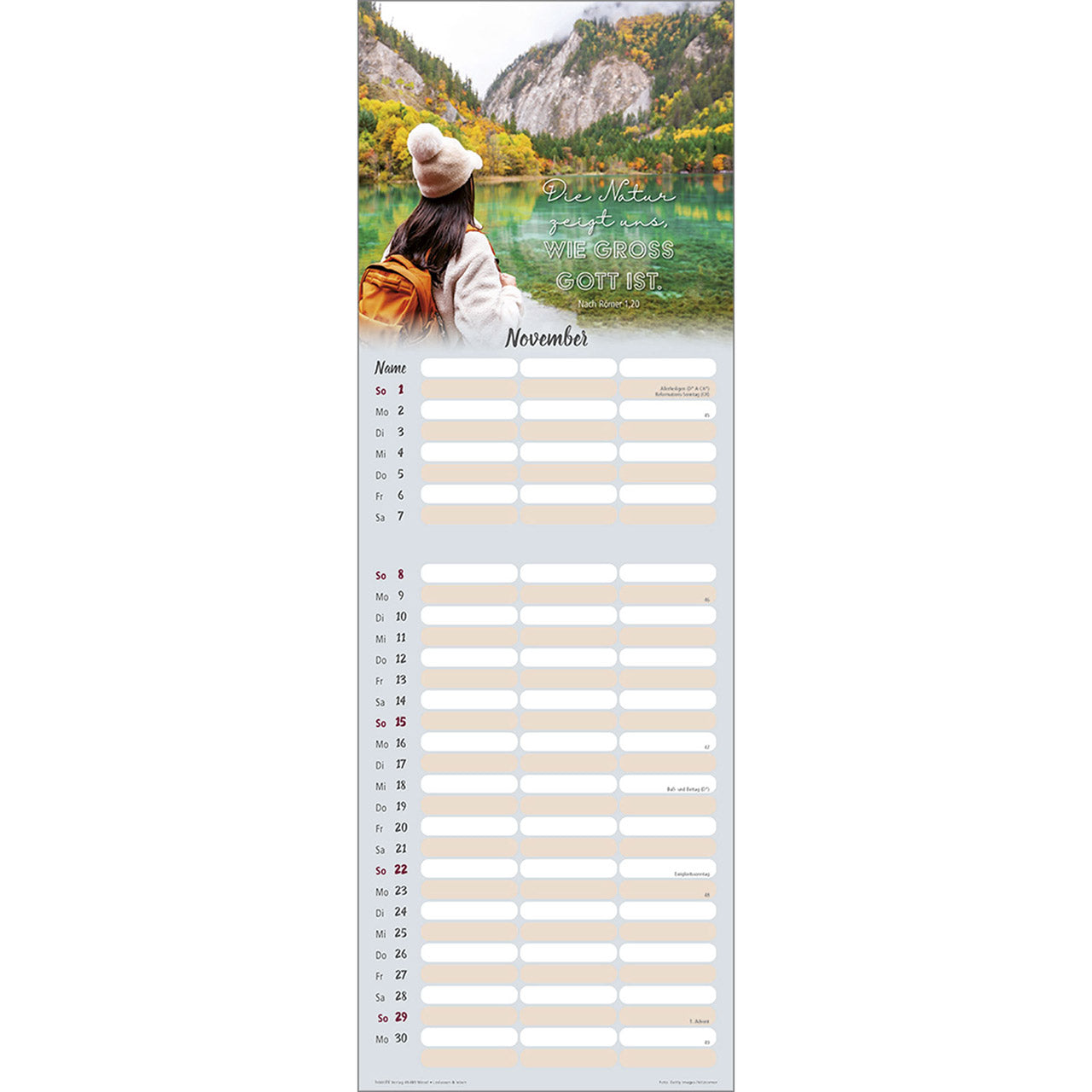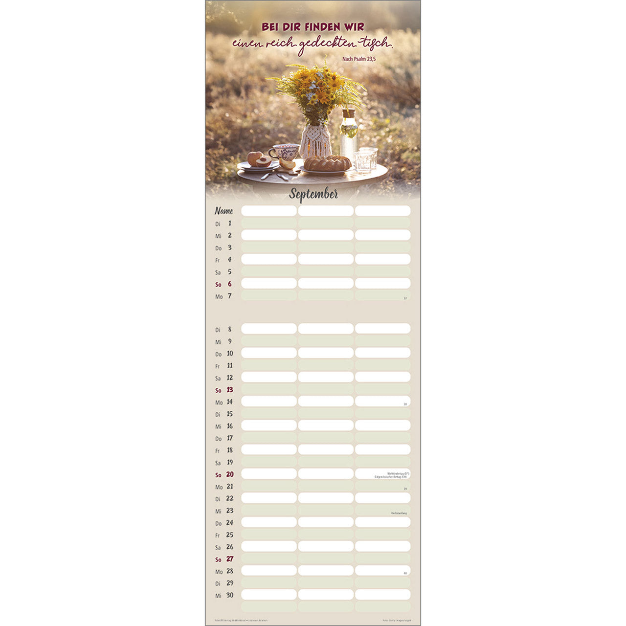 Termin-Kalender mit Bibelwort-Herzstücken - 3 Spalten