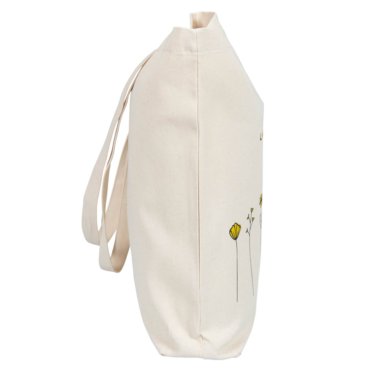 Strapazierfähige Baumwolltasche mit langen Henkeln, praktisch und modisch für Einkauf und Freizeit. Zweifarbig bedruckt mit toller Aussage "Love like Jesus" und stilisierten Blumen.