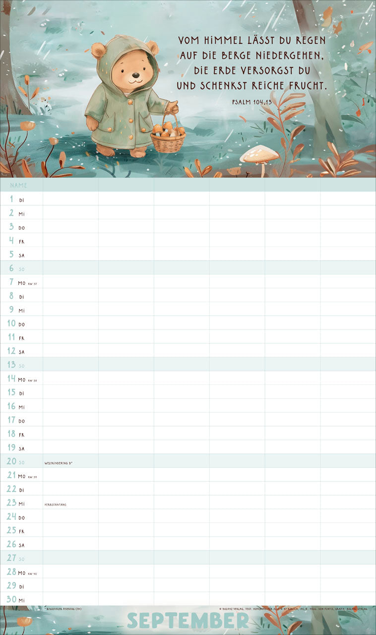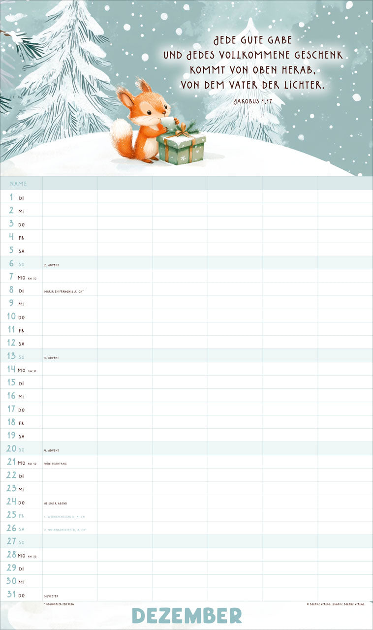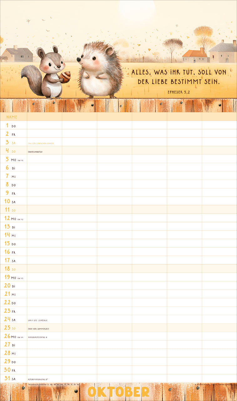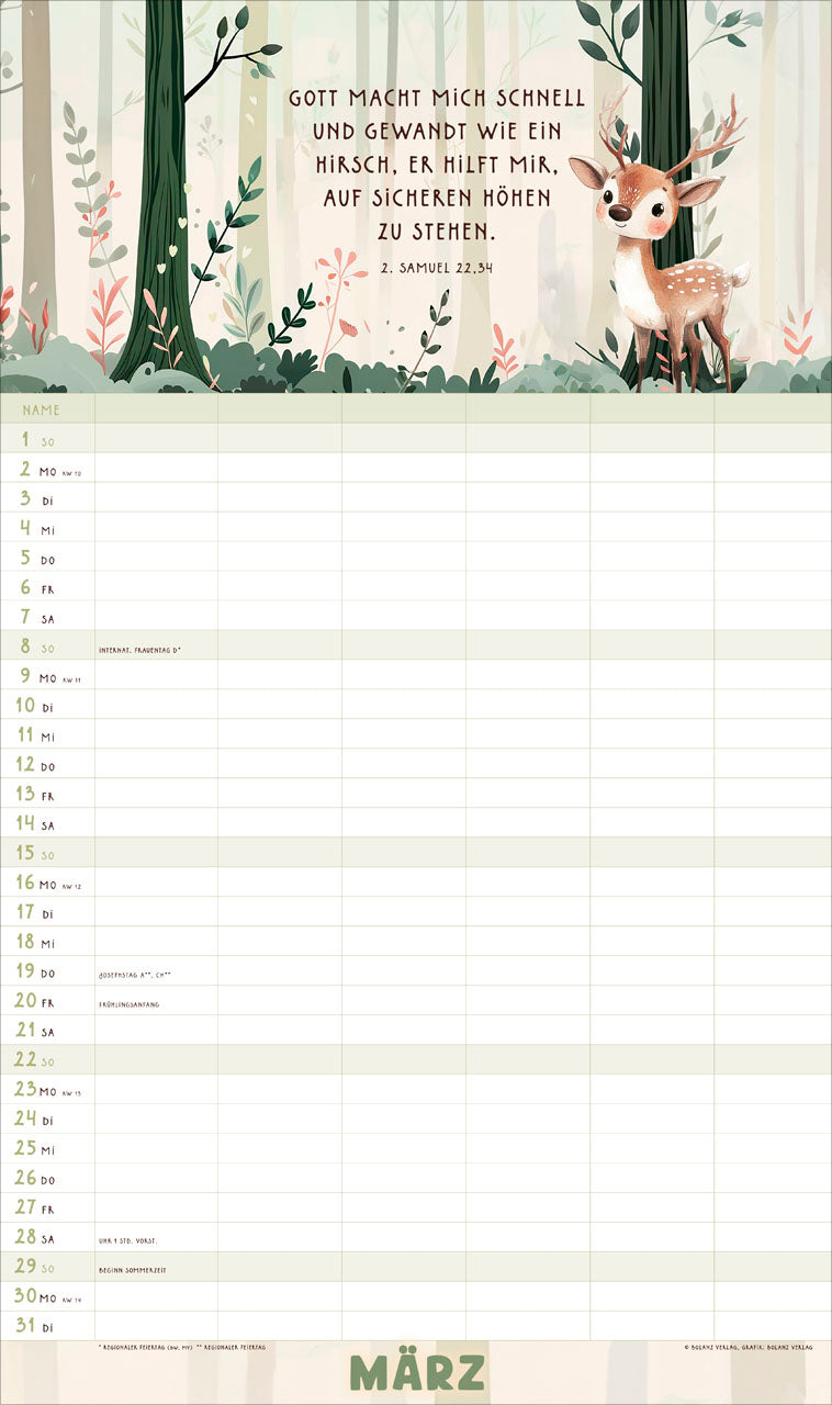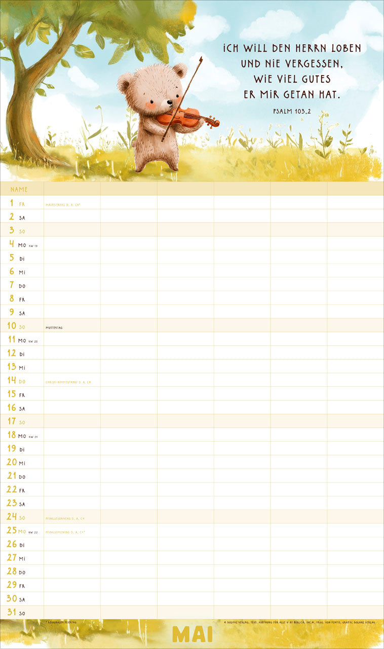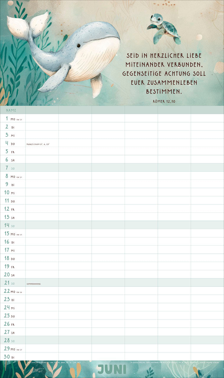 Wann kommt Oma zu Besuch? Geht Anna am Donnerstag reiten? Mit dem Familienplaner überblicken Sie alle Termine - eine echte Hilfe, um das Familienleben gemeinsam zu gestalten. Lustige Zeichnungen und anregende Bibelverse bereichern den sechsspaltigen Planer.