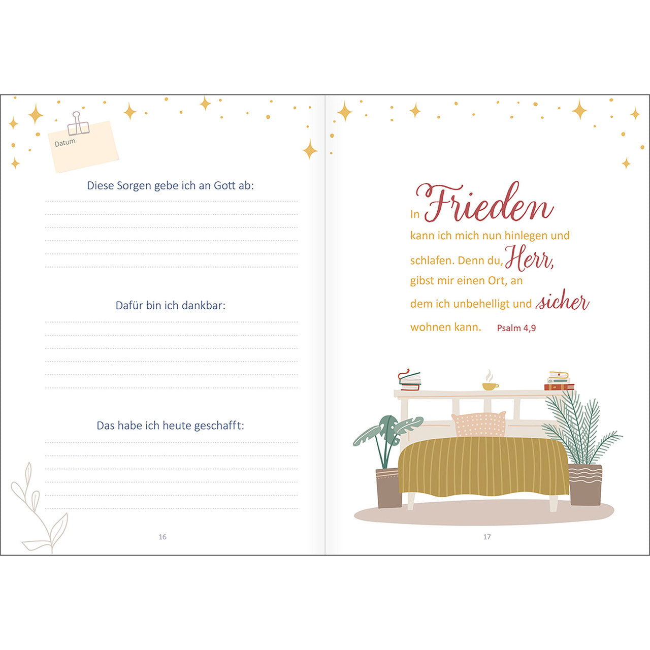 Fällt es Ihnen abends schwer zur Ruhe zu kommen? Machen Sie es sich mit diesem ganz besonderen Tagebuch gemütlich, und genießen Sie eine wertvolle Auszeit vor dem Schlafen. Freuen Sie sich noch einmal über die Erfolge des Tages, schauen Sie dankbar auf die schönen Momente zurück und legen Sie Ihre Sorgen in Gottes Hand.