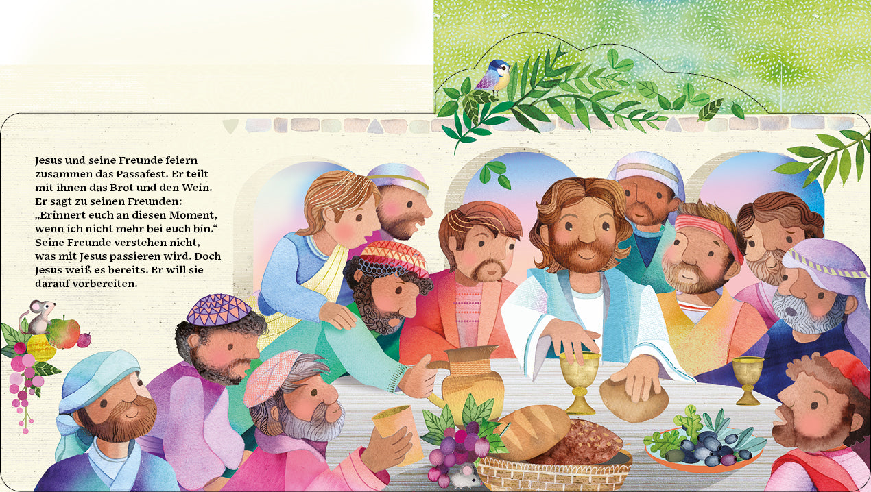 Kinder ab 3 Jahren sind mit diesem Buch ganz nah beim letzten Abendessen und im Garten Getsemani dabei, schauen aus der Ferne, was am Karfreitag geschieht, gehen mit zum leeren Grab und freuen sich mit darüber, dass Jesus lebt!