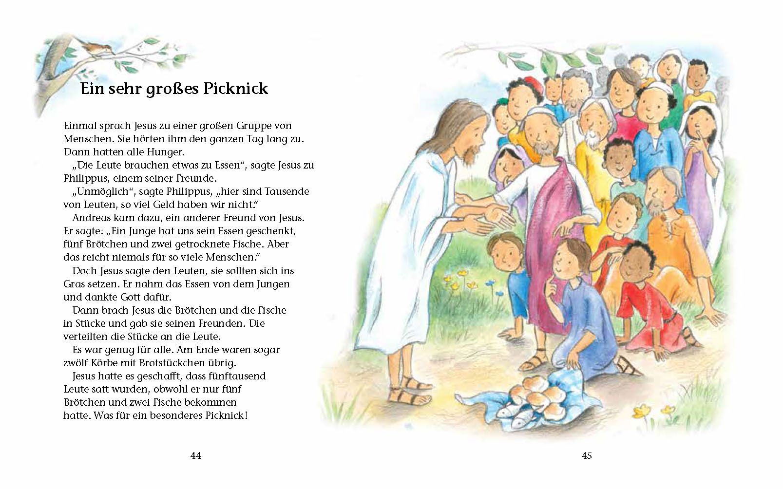 27 bekannte Bibelgeschichten werden auf jeweils einer Doppelseite mit liebevollen Illustrationen für Kinder verständlich nacherzählt. Die kurzen Erzählungen aus dem Alten und Neuen Testament zeigen Gottes Liebe zu den Menschen von der Schöpfung bis zur Auferstehung.