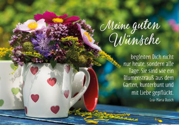 Meine guten Wünsche begleiten Dich nicht nur heute, sondern alle Tage. Sie sind wie ein Blumenstrauß aus dem Garten, kunterbunt und mit Liebe gepflückt.