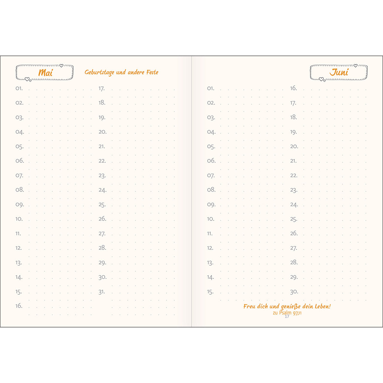 Mit Geburtstagskalender, christlichen Texten von Doro Zachmann und Bibelversen.
