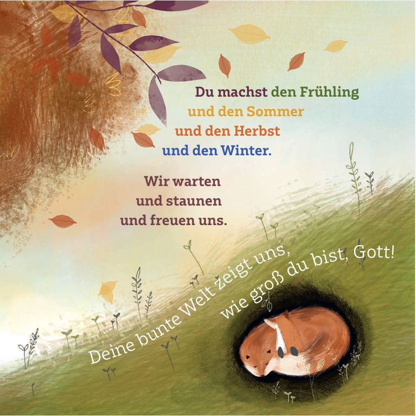 Gelbe Osterglocken, fliegende Möwen, leuchtend orangefarbene Kürbisse und wirbelnde Schneeflocken - Gottes bunte Kreativität ist überall in der Natur zu finden. Jede Jahreszeit ist voller Schönheit und Wunder. Überall, wo wir hinschauen, erinnert uns die Schöpfung daran, dass Gott bei uns ist, immer, genau jetzt.