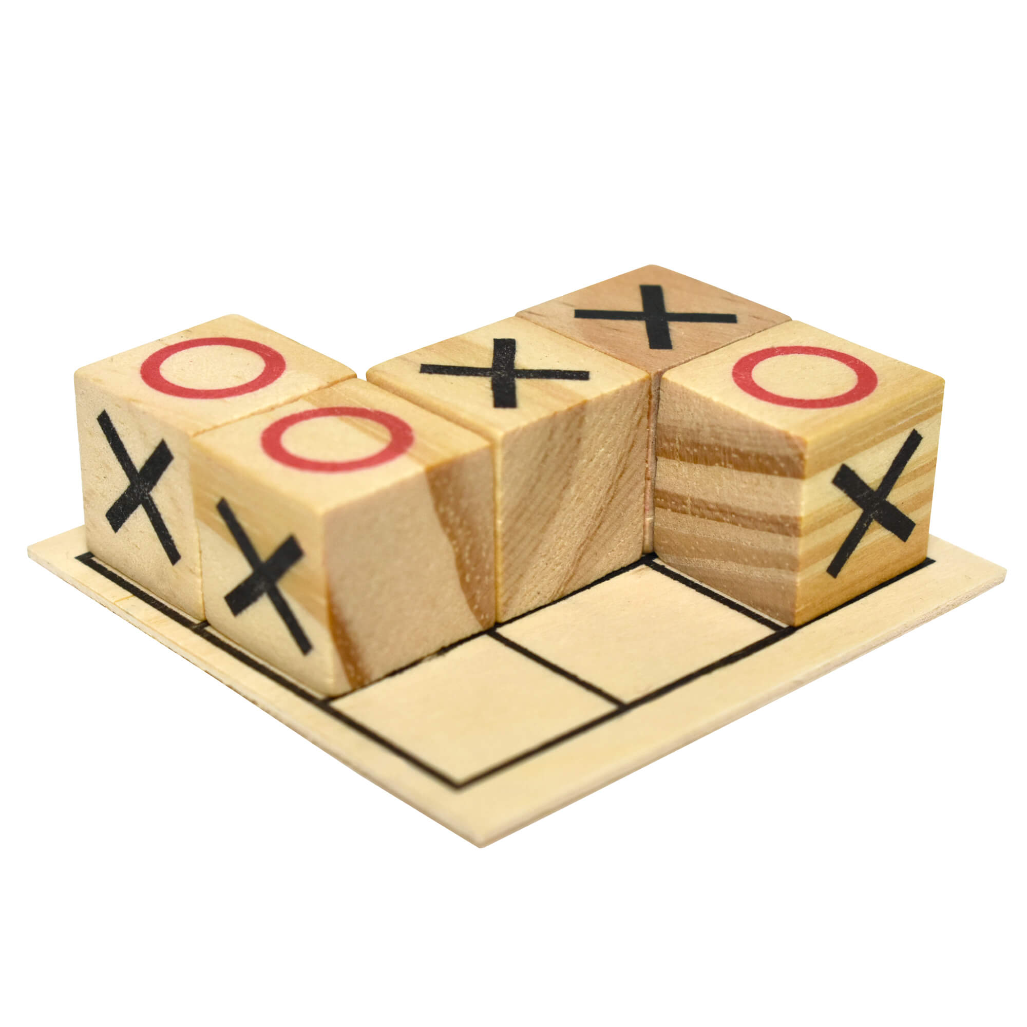 Handliche Holzbox (ca. 7,1 x 7,1 x 2,7 cm) mit Tic Tac Toe-Spiel aus Holz.