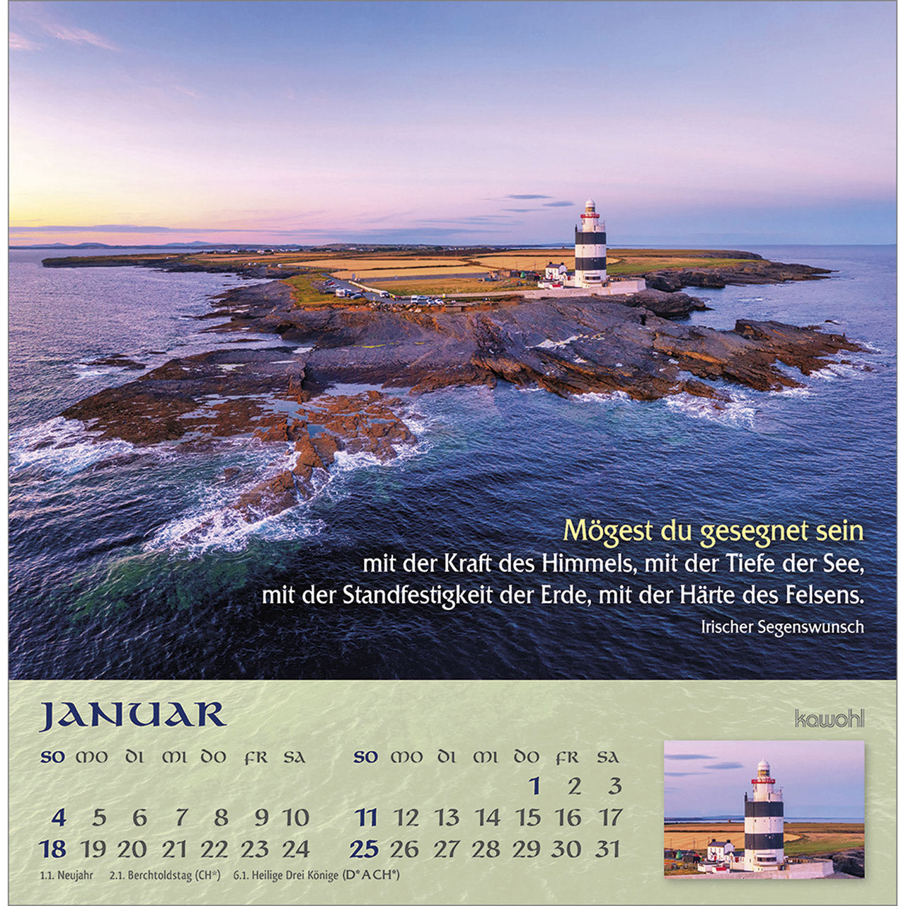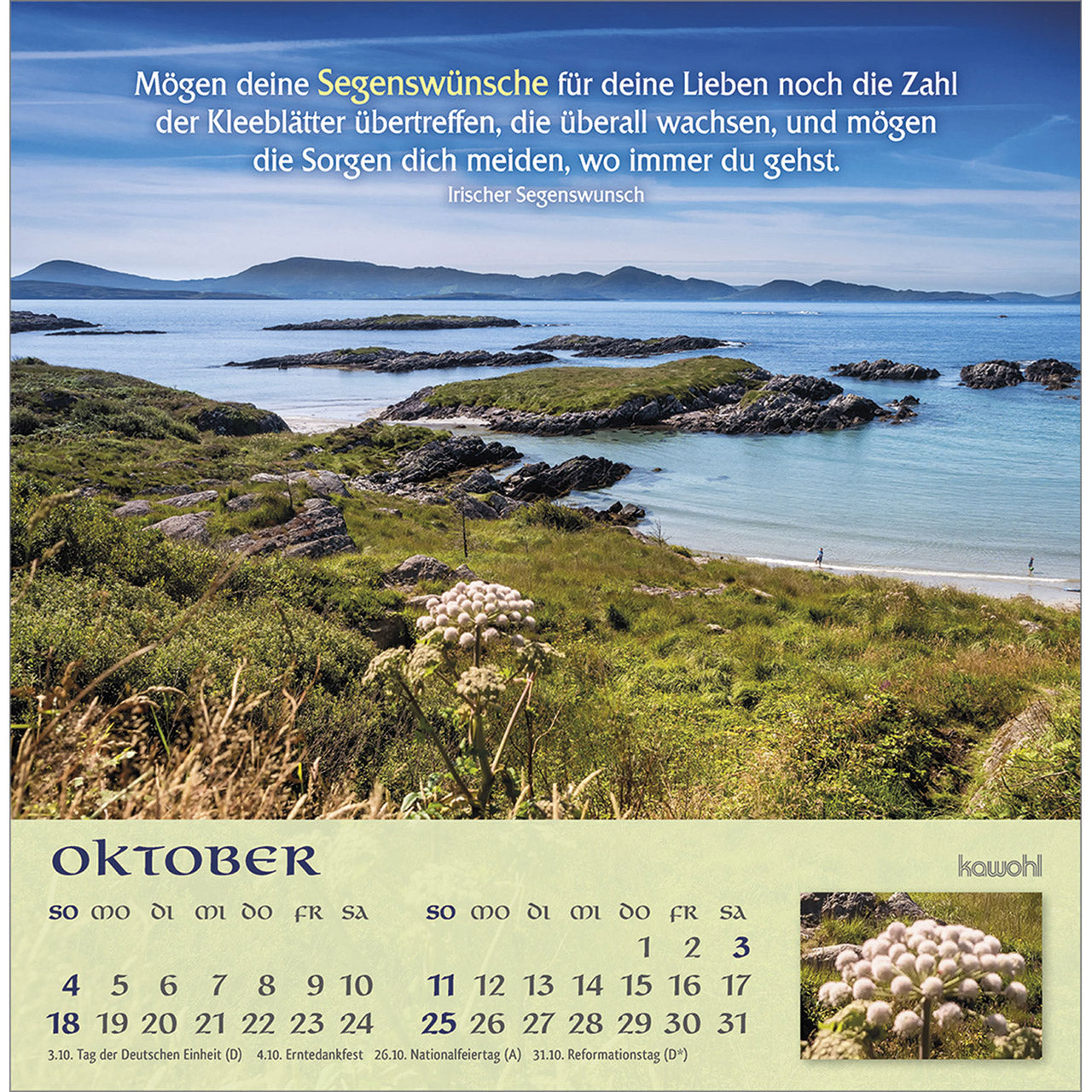 Lassen Sie sich faszinieren von der atemberaubenden wildromantischen Schönheit der "grünen Insel". Impressionen aus Irland mit irischen Segenswünschen und übersichtlichem Monatskalendarium.