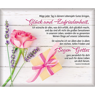 Ich wünsche dir alles, was dich erfüllt, dich glücklich macht, und das sind oft nicht die großen Sensationen in unserem Leben, sondern die so genannten kleinen Dinge auf unserer Lebensreise.
