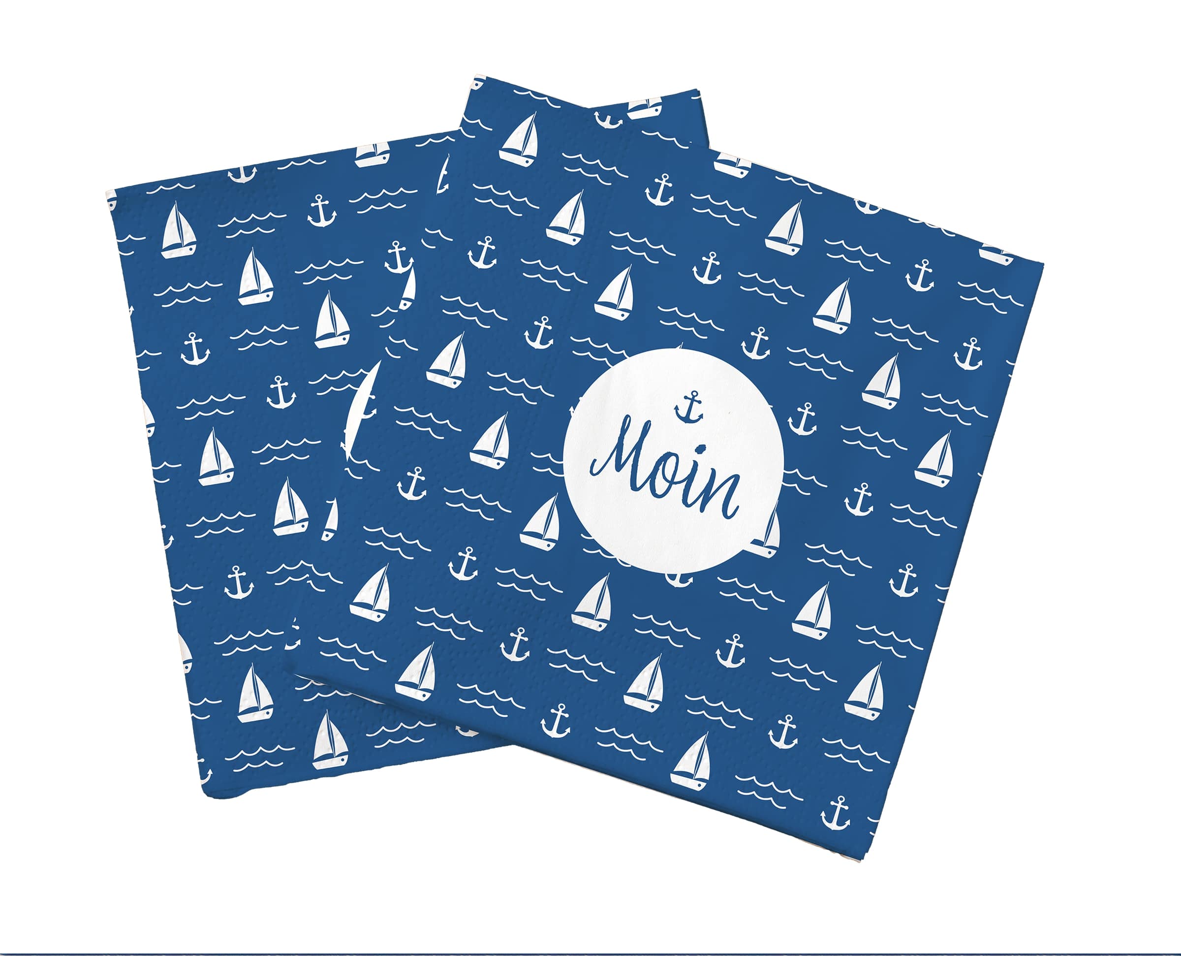 Eine wunderschön gestaltete Serviette mit maritimen Motiven in warmem Blau gehalten. Für alle Freunde des Meeres.