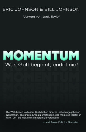 "Momentum" befasst sich mit den klassischen Sachverhalten, die die persönlichen und allgemeinen Erweckungen behindert oder zerstört haben. Die Autoren schreiben aus ihrer eigenen Perspektive und geben ihre Erfahrungen, die sie diesbezüglich gemacht haben, wieder. Jeder Gläubige hat uneingeschränkten Zugang zu einem außergewöhnlichen Momentum, das seit Anbeginn der Zeit existiert. Treten wir also unser Erbe an und lassen wir uns von ihm in das Momentum des Reich Gottes katapultieren.