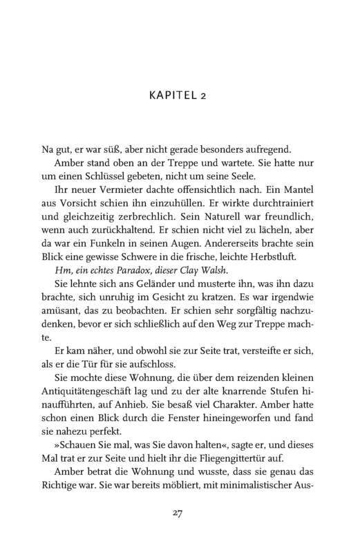 Clay Walsh ist unter seinen Freunden berüchtigt für seine strenge Moral im Umgang mit Liebe und Romantik. Doch als der Freigeist Amber die Wohnung über seinem Antikladen bezieht, fühlt er sich unwiderstehlich angezogen von dieser lebenslustigen, spontanen Frau. Amber spürt, dass sich hinter Clays abweisendem Äußeren ein treuer und ritterlicher Mann verbirgt. Für beide beginnt ein Abenteuer, als ihre Freundschaft zu Liebe wird.