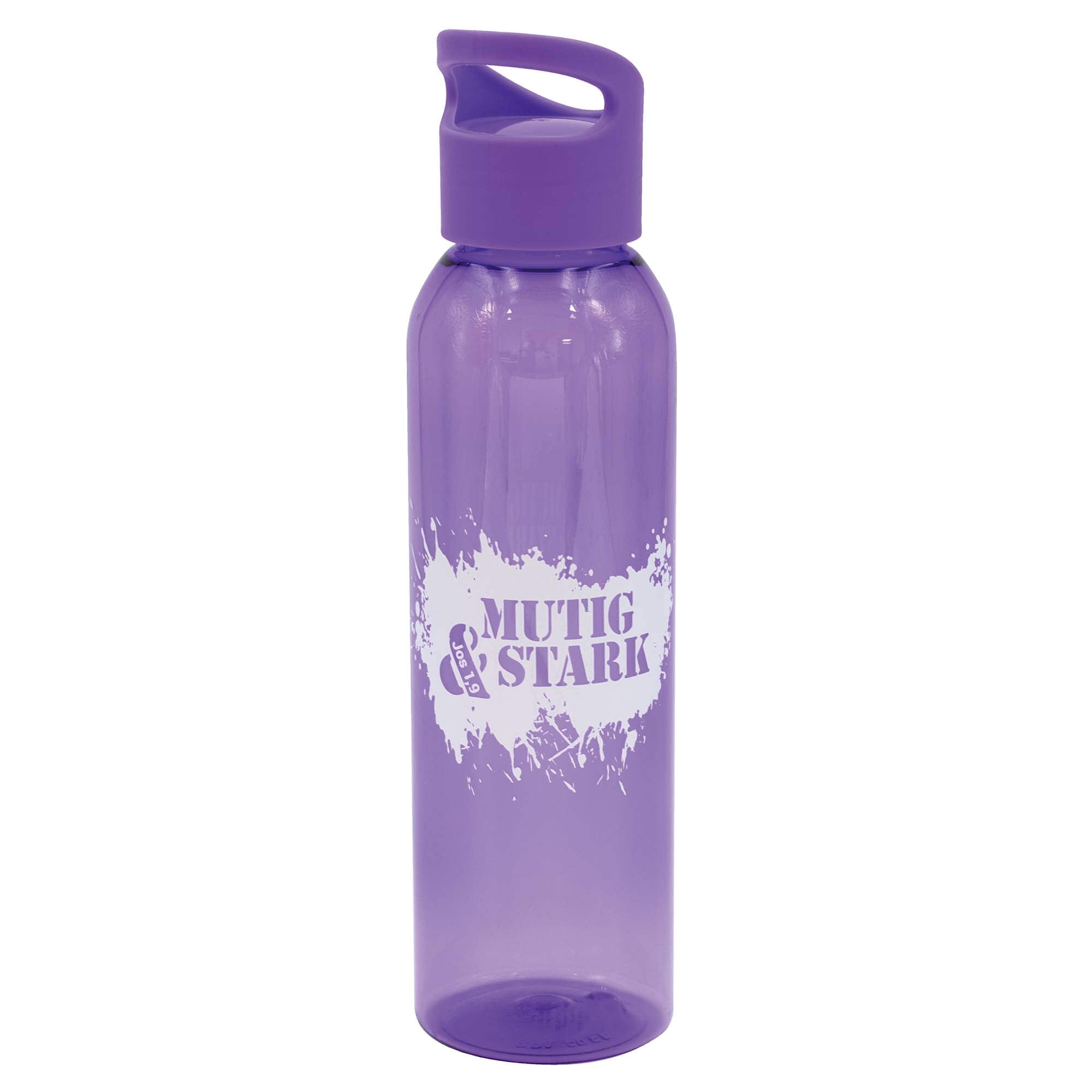 Bedruckt ist sie mit dem Text "mutig & stark Jos 1,9", peppig und modern umgesetzt. Die bunten Flaschen sind mit praktischem Schraubdeckel versehen und tropfsicher.