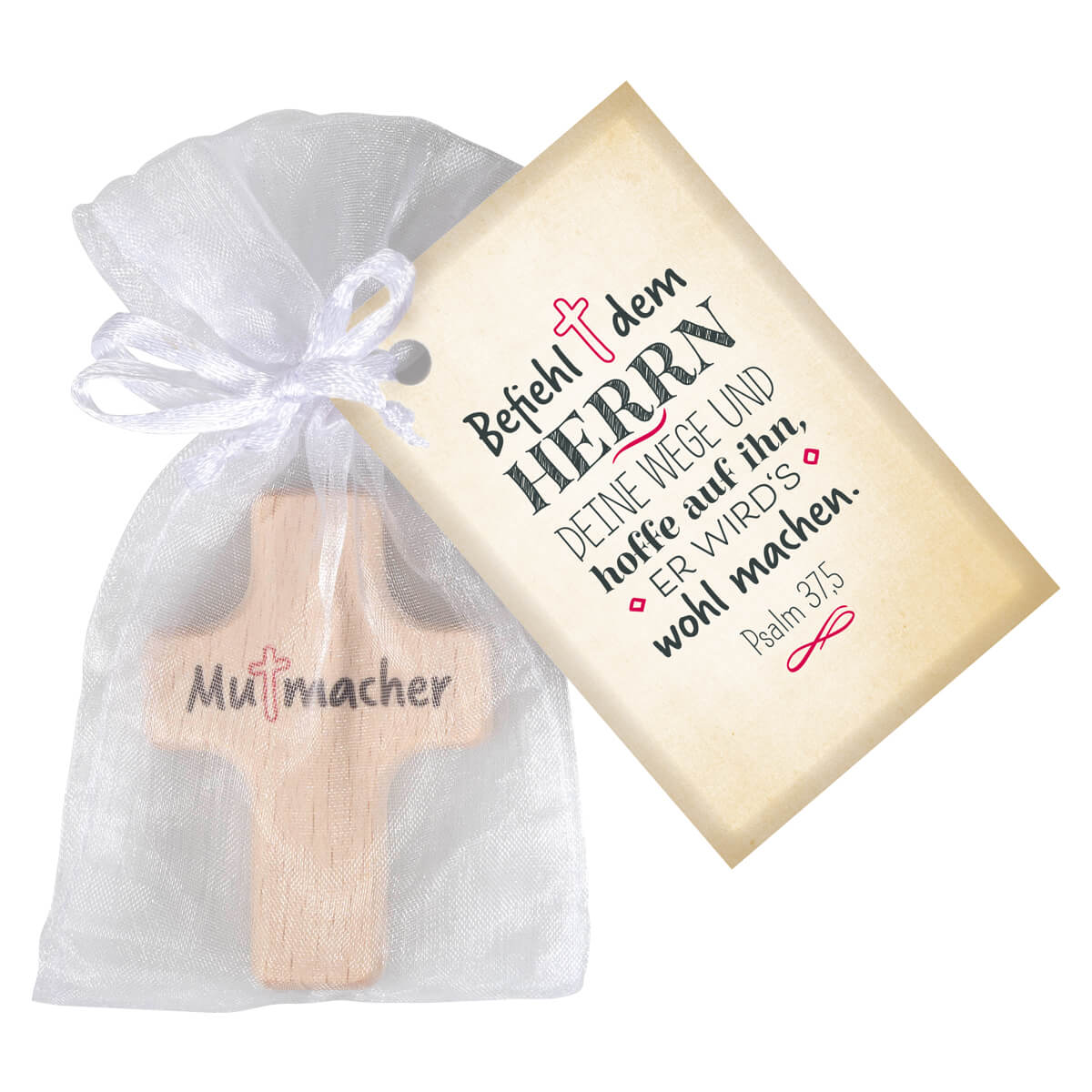 Im Organzabeutel verpackt mit Geschenkanhänger "Befiehl dem Herrn deine Wege...".