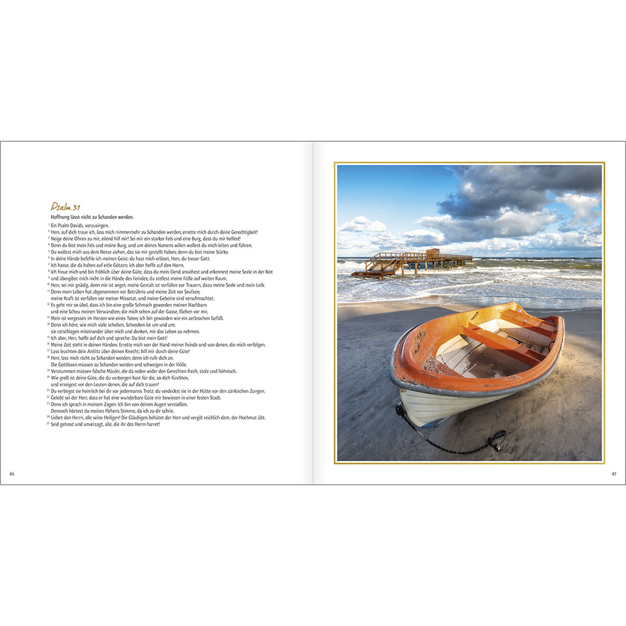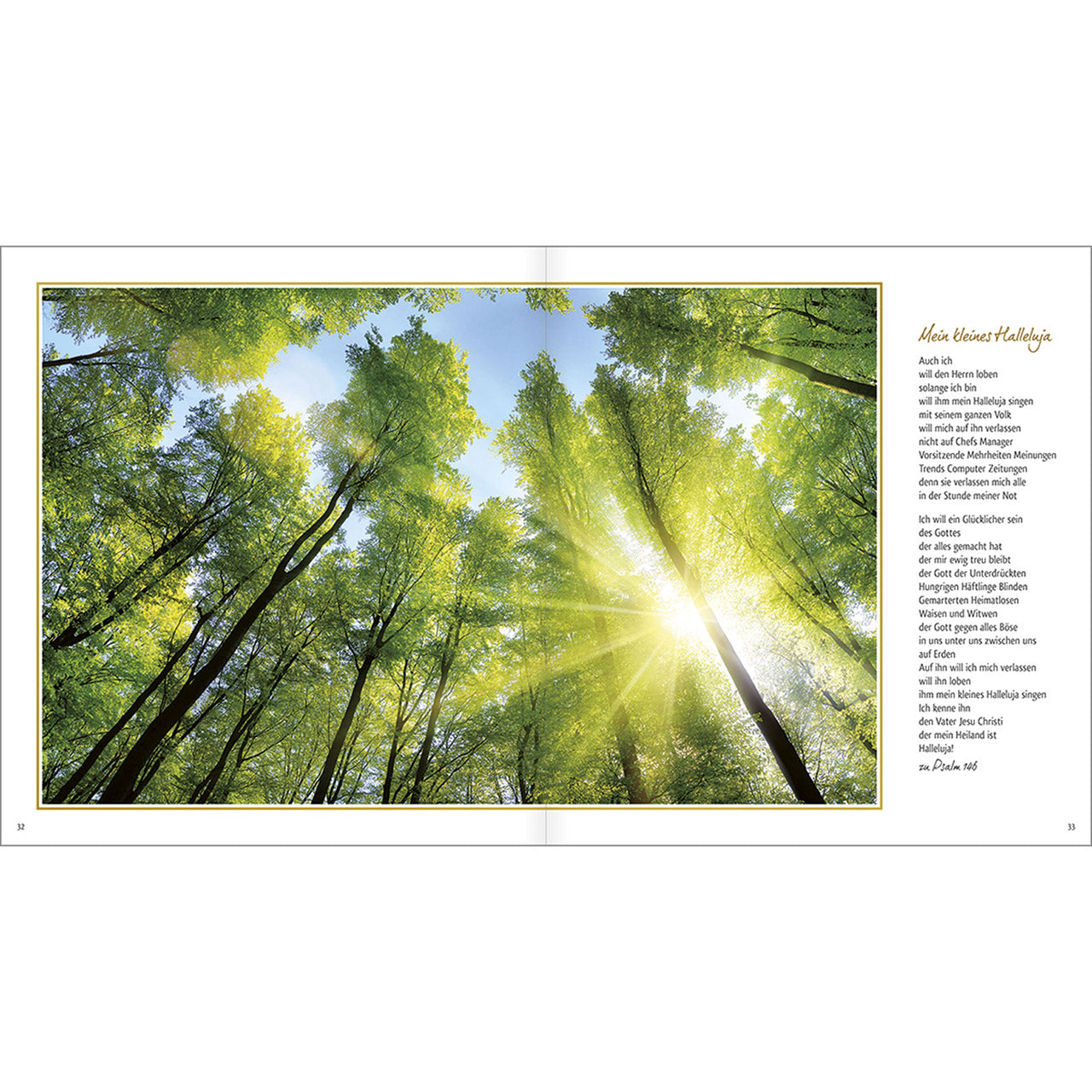 Zum Verlags-Jubiläum "50 Jahre Kawohl Verlag" erscheinen die bewegenden Psalm-Meditationen in einem edlen, strahlenden Gewand. Diese großformatige Sonder-Ausgabe beinhaltet erstmals auch die biblischen Psalm-Texte, die den Betrachtungen zugrunde liegen. Aktuelle, erfrischende und stimmungsvolle Fotografien interpretieren die facettenreichen Texte auf einfühlsame Weise.