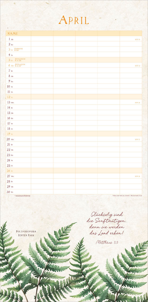 Naturwunder des Schöpfers 2026 (Familien-Wandplaner)
