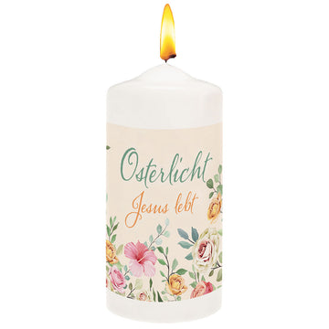 Kerze mit Blumenmotiv für leuchtende gute Wünsche