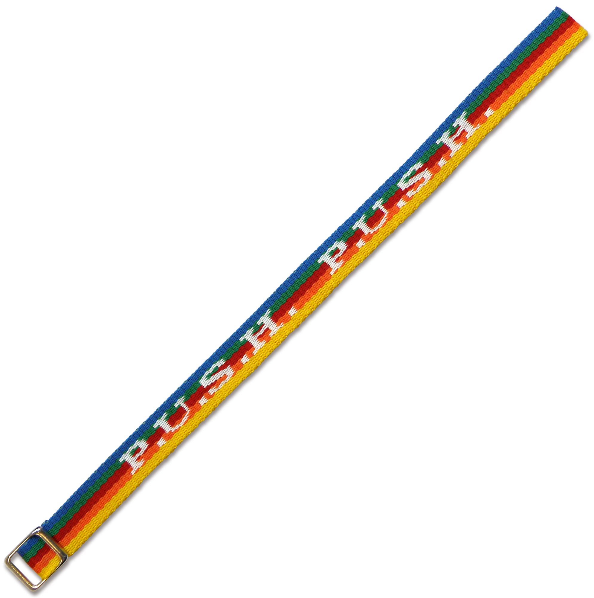 Gewebtes Armband mit Text: P.U.S.H. (Pray until something happens - Bete bis etwas passiert)