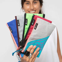 Die beiden dreieckigen Farbmuster auf der Vorderseite machen dieses Mäppchen ("Pencil Case") zu einem echten Hingucker. Gefertigt aus gebrauchtem Kitesurf-Segel, ist dieses Upcycling-Produkt schön nachhaltig und bewahrt nicht nur Stifte auf, sondern auch Make-Up oder andere Kleinigkeiten. Durch den sicheren Reißverschluss an der Oberseite sind auch Wertsachen sicher geschützt.