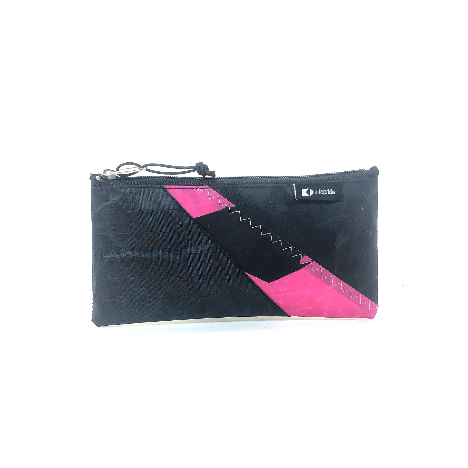 Die beiden dreieckigen Farbmuster auf der Vorderseite machen dieses Mäppchen ("Pencil Case") zu einem echten Hingucker. Gefertigt aus gebrauchtem Kitesurf-Segel, ist dieses Upcycling-Produkt schön nachhaltig und bewahrt nicht nur Stifte auf, sondern auch Make-Up oder andere Kleinigkeiten. Durch den sicheren Reißverschluss an der Oberseite sind auch Wertsachen sicher geschützt.