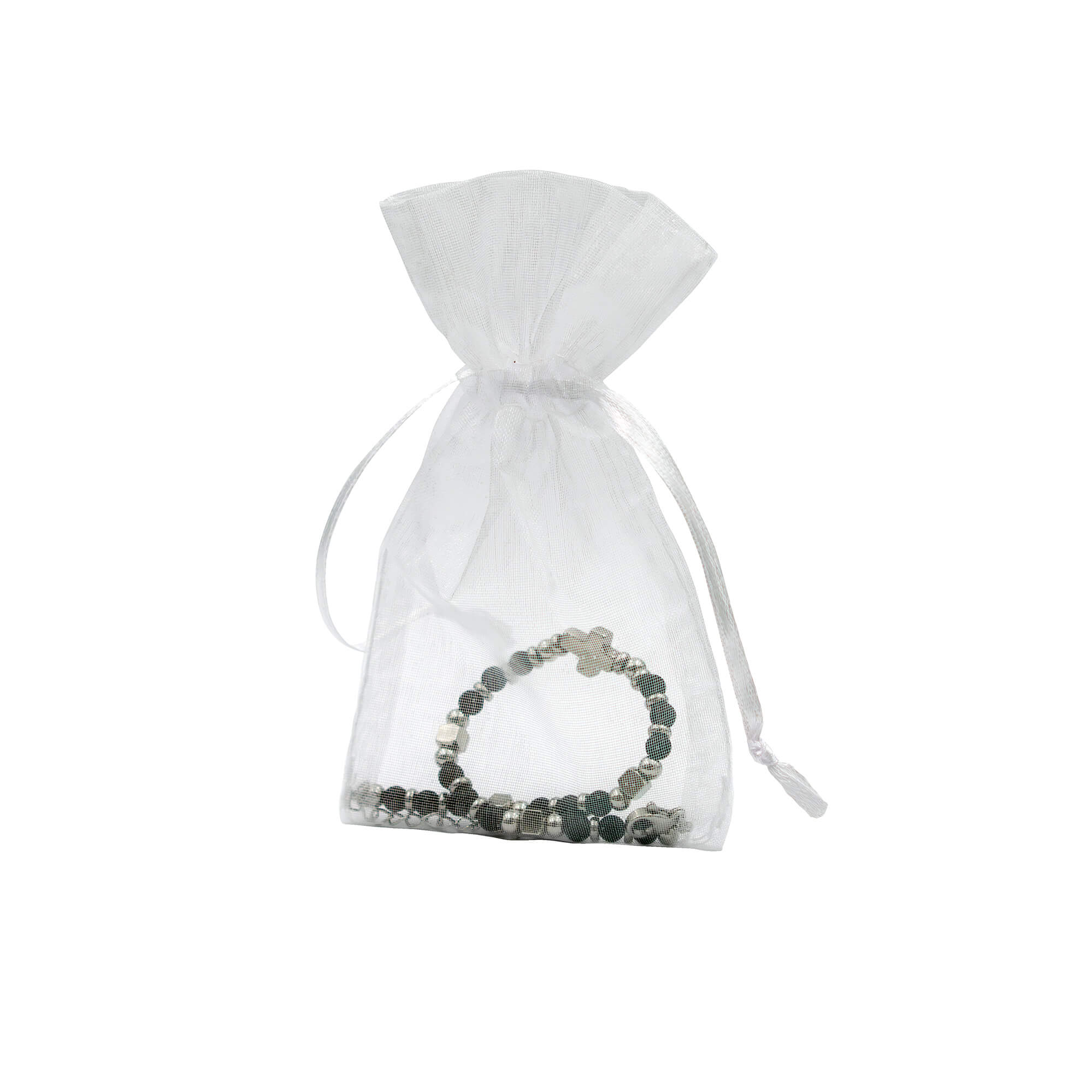 Das integrierte Schmuckkreuz ist ein dezentes Highlight und verleiht dem Armband eine besondere Note. Verpackt ist das Armband in einem Organzabeutel.