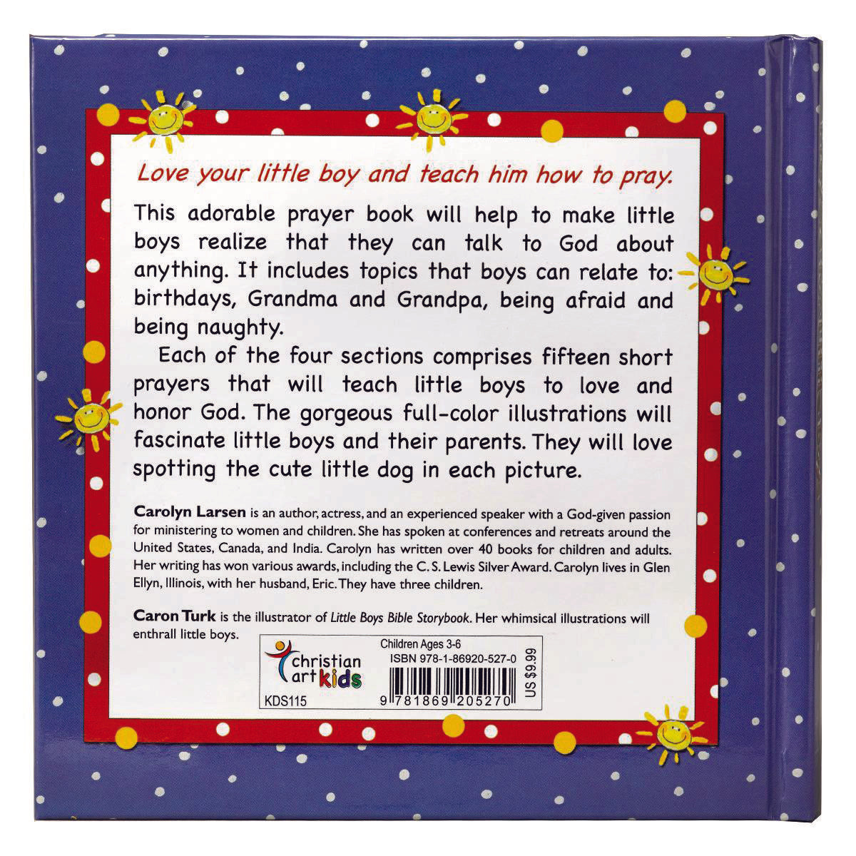 The author, Carolyn Larsen, has written more than 40 books for children and adults. She is best known as the author of the Little Girls & Boys Bible Storybook line of products, with illustrations by Caron Turk.