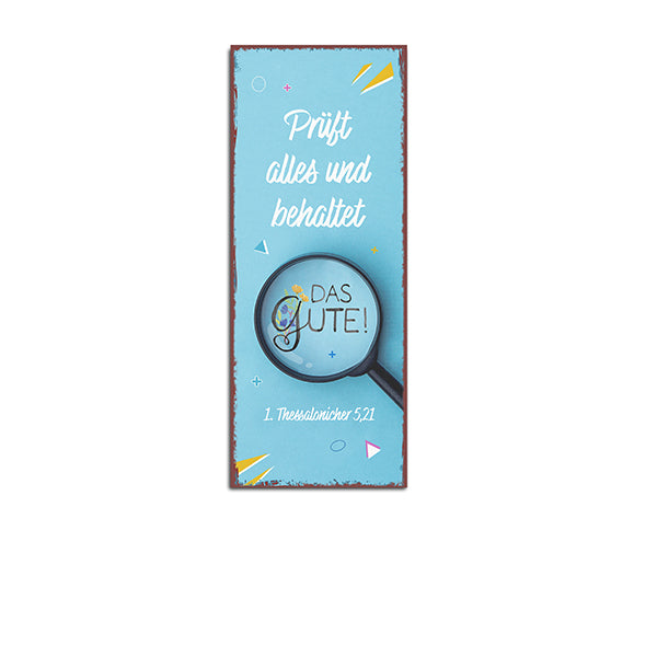 Prüft alles und behaltet das Gute - Motiv Lupe (Metallschild)