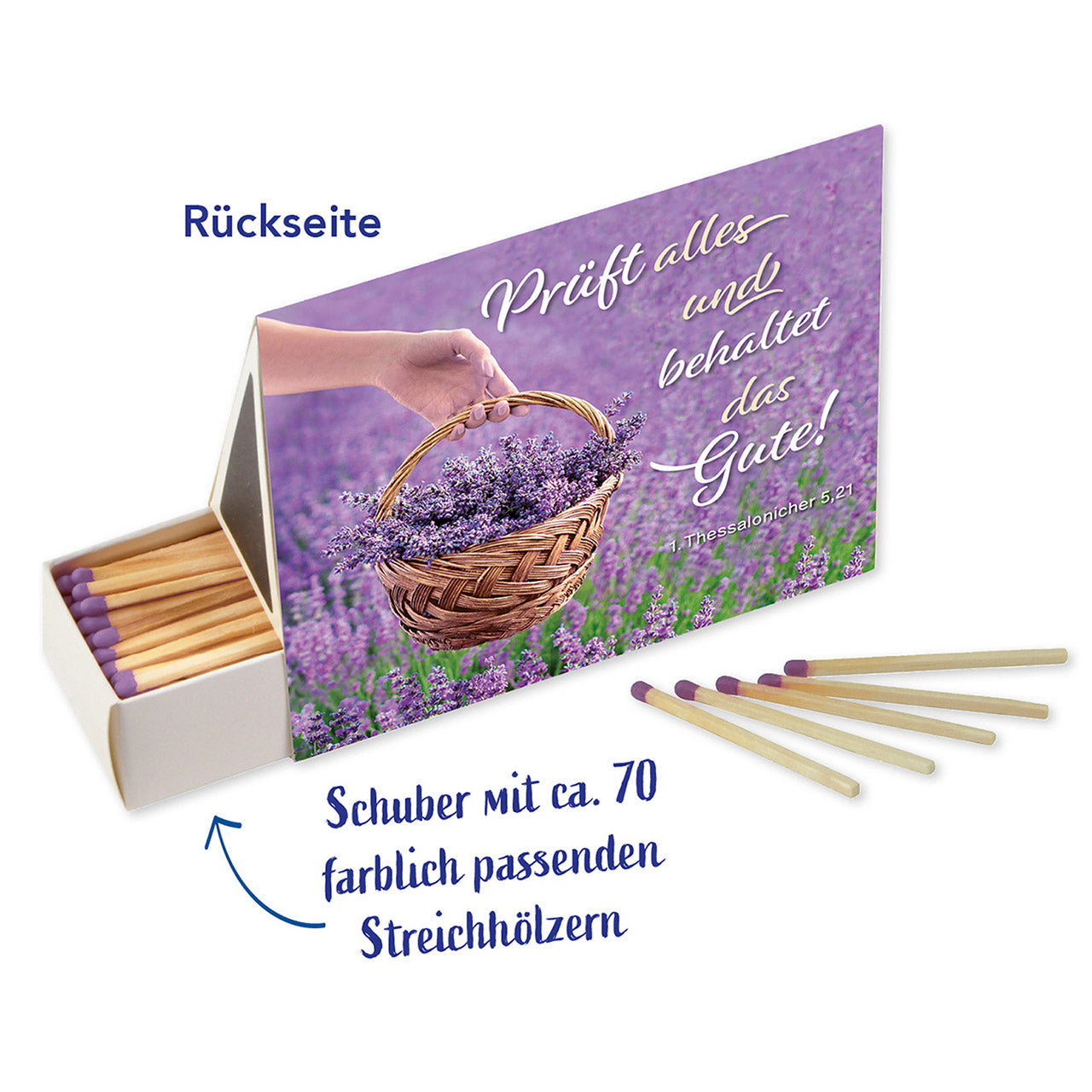 Ein hübscher und praktischer Begleiter mit dem Text der Jahreslosung 2025. So hat man immer ein passendes Streichholz zur Hand.