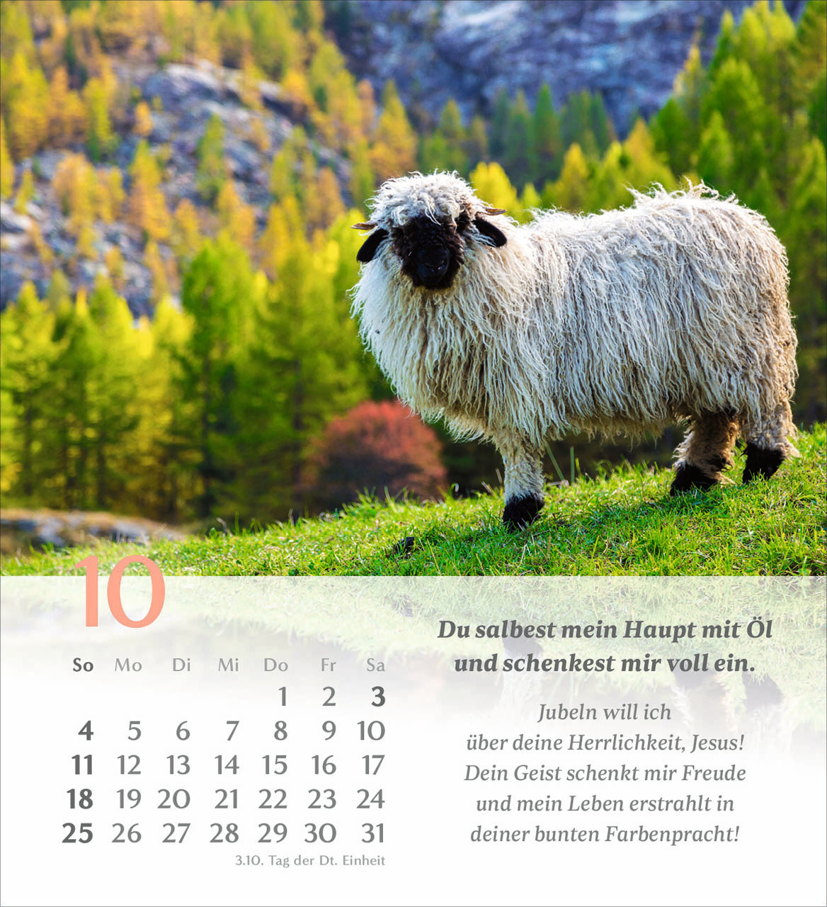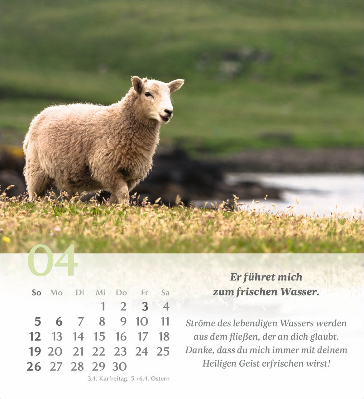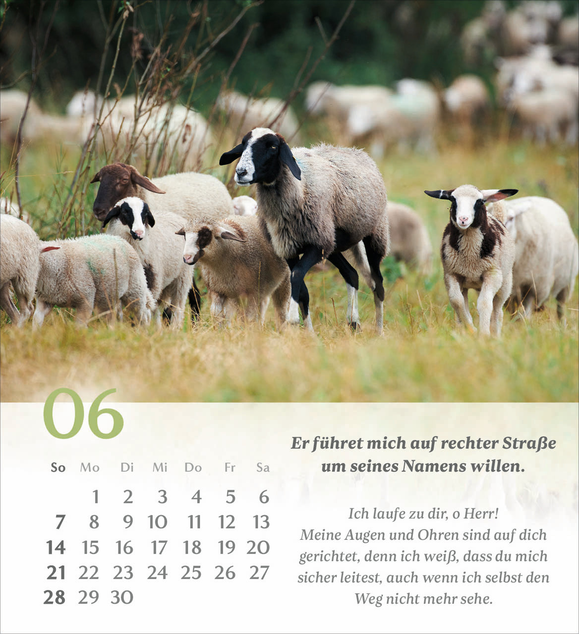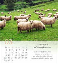 Gehen Sie mit den Gedanken dieses wunderbaren Psalms von König David durch das Jahr. Illustriert werden die Verse mit abwechslungsreichen, symbolischen Bildern, die uns den Psalm 23 näherbringen. Jeder Monat beschäftigt sich mit einem Vers des Psalms.