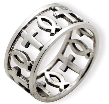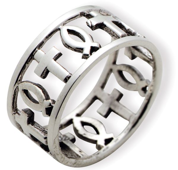Ring mit Fisch/Kreuz-Motiv (Sterling-Silber, ausgestanzte Motive)
