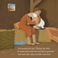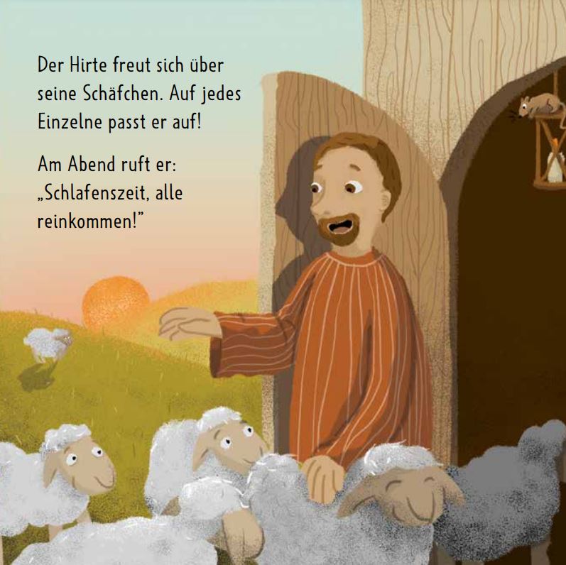 Alle Schafe in der Herde schlummern friedlich. Bis auf Lotte. Sie kann nicht einschlafen. Doch dann kommt der gute Hirte zu ihr und Lotte erfährt, dass sie keine Angst haben muss.
