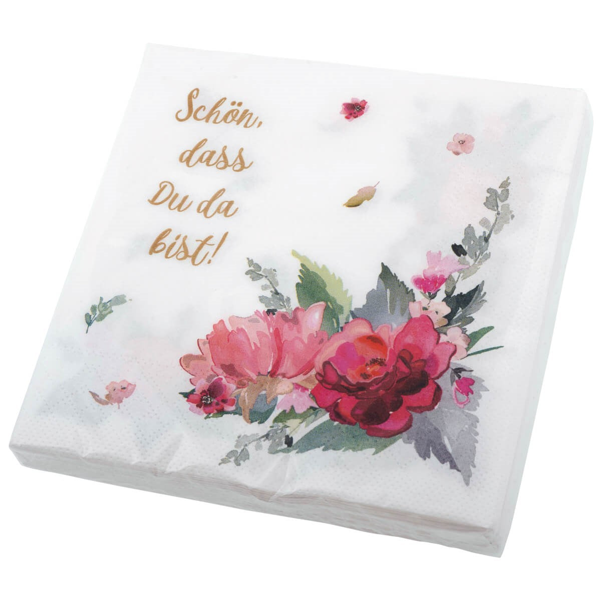 Schön, dass Du da bist - Servietten (20 Stück - Motiv Rosen)
